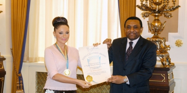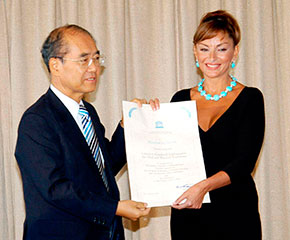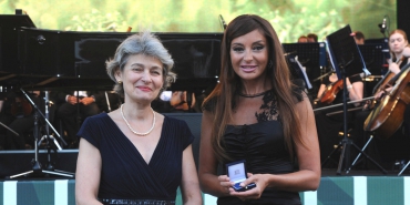 On August 13, 2004, Mehriban Aliyeva was awarded the title of a Goodwill Ambassador of UNESCO for her tireless efforts towards protection and development of Azerbaijan's verbal folk literature and music heritage. On September 9, 2004, a ceremony of awarding Mehriban Aliyeva the title of a Goodwill Ambassador of UNESCO took place at the organization’s headquarters. |