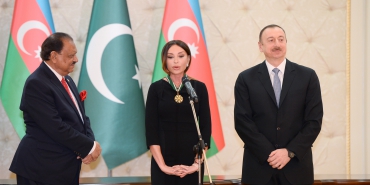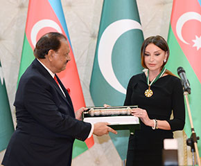 On 11 February 2015, Mehriban Aliyeva was conferred on the order of “Hilal-e Pakistan” – the highest state award of Pakistan – for the services and great contributions she has made to Pakistan. On March 11, 2015, within the official visit of President of the Islamic Republic of Pakistan Mamnun Hussein to Azerbaijan, a ceremony of presenting to Mehriban Aliyeva the “Hilel-e-Pakistan” Order took place. |