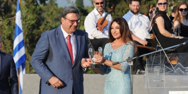 On June 15, 2014, President of “Elpida” Friendship Association of Children Suffering From Cancer Marianna Vardinoyannis presented the “Elpida” Award to Mehriban Aliyeva in Athens. |