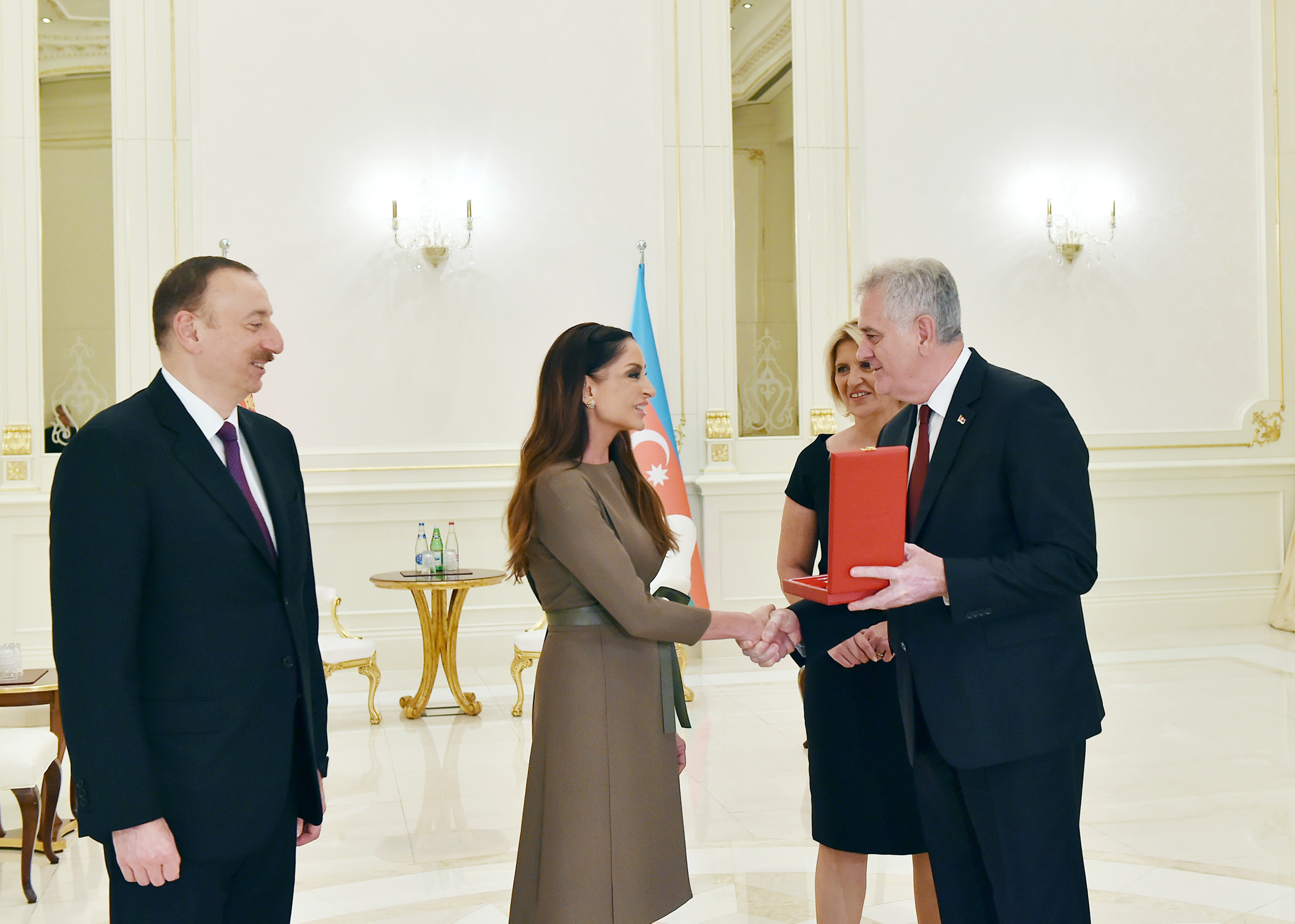 26 March 2015, Mehriban Aliyeva was conferred on a high state award of the Serbian Republic – the Sreten Order – for her special services before the Serbian Republic in the public, cultural and humanitarian fields. On 11 June 2015, within the framework of the visit by President of the Serbian Republic Tomislav Nicolich to Azerbaijan, a ceremony of presenting to Mehriban Aliyeva the Sreten Order took place. |