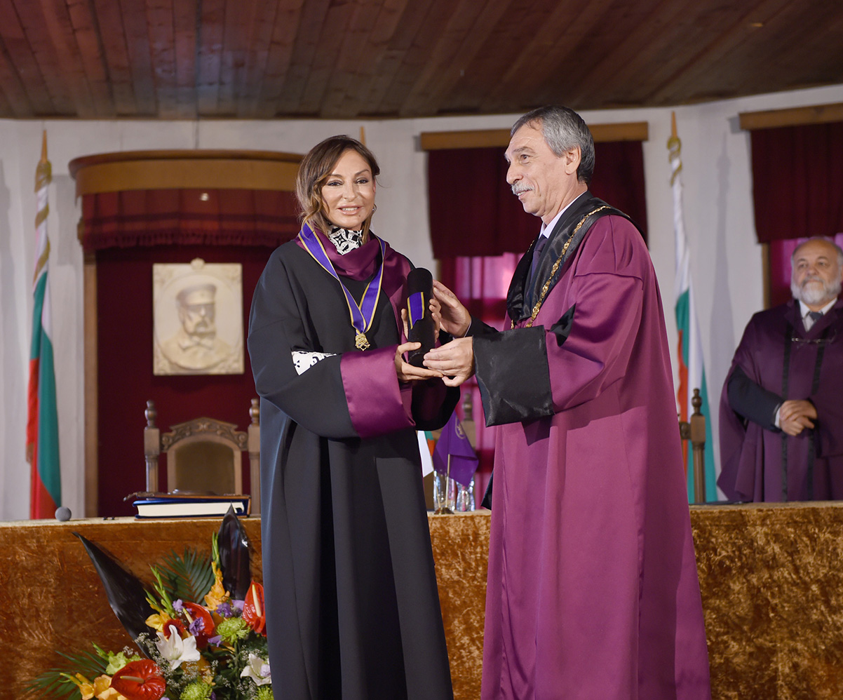 On September 22, 2016, for the great contribution to preservation and promotion of Bulgaria’s cultural heritage, and active participation in this work, Mehriban Aliyeva was conferred on a diploma of honorary doctor of the Veliko Tyrnovo University named after Saints Cyril and Methodius. |