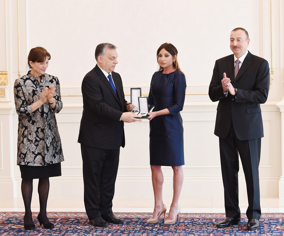 On 6 March 2016, within the framework of Hungarian Prime Minister Viktor Orban’s official visit to Azerbaijan, a ceremony of conferring Mehriban Aliyeva on Commander’s Cross Order of Merit of the Republic of Hungary took place. |
