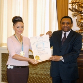 03.03.2006President of Heydar Aliyev Foundation, UNESCO Goodwill Ambassador, MP Mehriban Aliyeva is awarded the golden medal of World Intellectual Property Organization (WIPO), one of the leading organizations at UN. The ceremony of the presenting the award was held on March 3 at the Foundation.