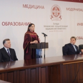 Rector of MSMU, correspondent member of the Russian Academy of Medical Sciences, Professor Peter Glybochko, welcomed the high-ranking guest on behalf of the university personnel and noted that the Heydar Aliyev Foundation has been paying much attention to the sphere of public health in its activity. Graduated from the university in 1988 with excellent marks, Mrs. Mehriban Aliyeva has been the pride of the university, and it is very rejoicing that so far she has not forgotten her native scientific hotbed, has been keeping in touch with the university and approaching with much attention its problems. P.O. Glybochko specifically emphasized that by a unanimous decision of the Scientific Council Mrs. Mehriban Aliyeva was honoured with a title of Honorary Professor.