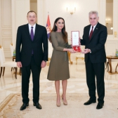 Mehriban Aliyeva: Thank you very much, mister President. This is a great honour for me. Thank you very much for this award.