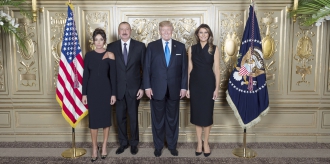 President Ilham Aliyev and First Lady Mehriban Aliyeva attend the reception arranged on behalf of US President Donald Trump and his spouse