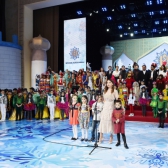 Дорогие ребята, вы также должны знать и то, что для подготовки этого праздничного веселья потрудилось много людей. Вот уже более 10 лет наши известные мастера искусств, музыканты, артисты отмечают вместе с вами в этом замечательном дворце «Бута» Новый год, создают для вас прекрасную, веселую атмосферу. Давайте вместе поприветствуем этих замечательных, заботливых людей и выразим им признательность.