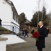 Dövlətimizin başçısı və xanımı abidənin önünə gül dəstələri qoyublar.