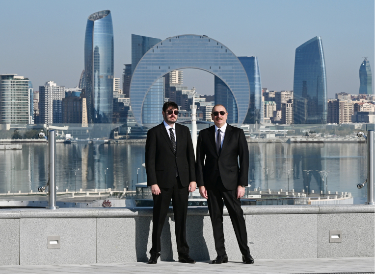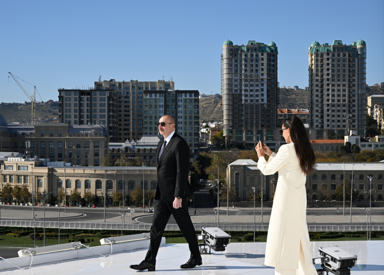 On November 8, President of the Republic of Azerbaijan Ilham Aliyev, First Lady Mehriban Aliyeva, and their son Heydar Aliyev visited the National Flag Square in Baku.