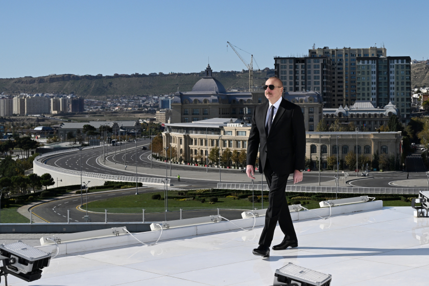 President Ilham Aliyev then inspected the developments at the square and the National Flag Museum.