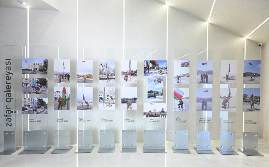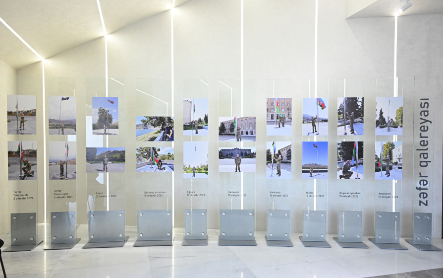 After the renovation, the National Flag Museum reopened with a refreshed layout. The museum now features an exhibition titled “Victory Gallery,” dedicated to the 44-day Patriotic War. The gallery showcases photos of the raising of the National Flag in the liberated territories by the victorious Commander-in-Chief, President Ilham Aliyev, as well as photos from the military parade held in the city of Khankendi on the third anniversary of the Victory in the Patriotic War.