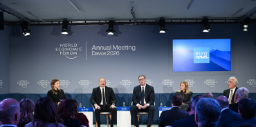 Moderator: Welcome to the World Economic Forum 2026, and to this session, “Defining Eurasia's Economic Identity.” With competing interests from the West to the East, the balance of influence and power in the Caucasus and Central Asia is being redrawn as we speak. Ambitious infrastructure plans and emerging trade corridors intersect with heightened competition over resources. How can the region make the most of these expanding routes and strengthen its role within them? This is what we are going to discuss today at the session, and it is my greatest honor to introduce the speakers. Ilham Aliyev, President of the Republic of Azerbaijan; Aleksandar Vučić, President of Serbia; Ebru Özdemir, Chairperson of the Board of Limak Holding, Türkiye; and Vahagn Khachaturyan, President of the Republic of Armenia. My name is Sasha Vakulina. I am Euronews' Europe Correspondent.