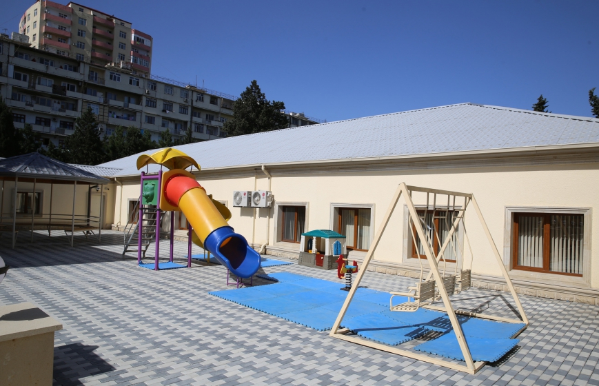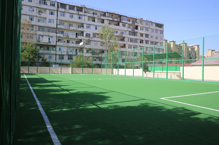 Müəssisənin həyətində süni yaşıl örtüklü idman meydançası yaradılıb, yaşıllıq salınıb, ərazidə və binanın fasadında müasir işıqlandırma sistemi, uşaqların istirahəti üçün dekorativ oturacaqlar quraşdırılıb.