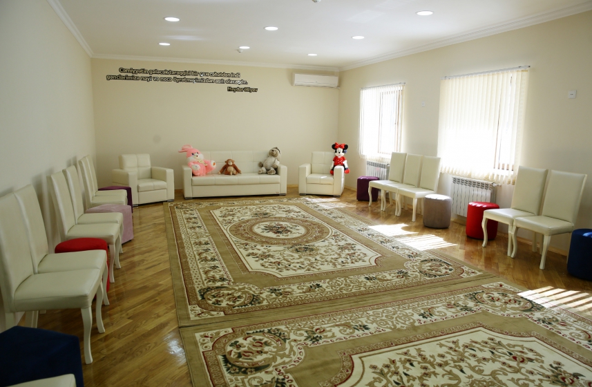 Azərbaycanın birinci xanımı uşaq müəssisəsində yaradılan şəraitlə tanış oldu. Müəssisədə kimsəsiz və valideyn himayəsindən məhrum olan 107 uşaq yaşayıb tərbiyə alır. Uşaq evinin 3 yaşdan 18 yaşadək sakinlərinin təlim-tərbiyəsi ilə 44 nəfər pedaqoji, texniki və tibb işçisi məşğul olur. Burada rəqs, vokal, evdarlıq, xalçaçılıq, rəsm dərnəkləri fəaliyyət göstərir.