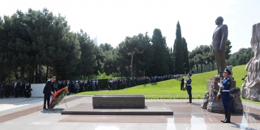 Prezident İlham Əliyev və xanımı Mehriban Əliyeva ulu öndər Heydər Əliyevin məzarını ziyarət ediblər