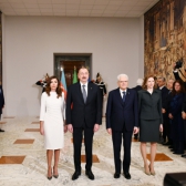 Prezident İlham Əliyevi və birinci xanım Mehriban Əliyevanı İtaliya Prezidenti Sercio Mattarella və qızı Laura Mattarella qarşılayıblar.