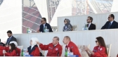 Prezidentlər İlham Əliyev, Rəcəb Tayyib Ərdoğan, birinci xanımlar Mehriban Əliyeva və Əminə Ərdoğan, qardaş ölkələrimizin rəsmi nümayəndə heyətləri və festival iştirakçıları aviaşounu izlədilər.