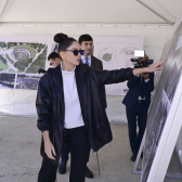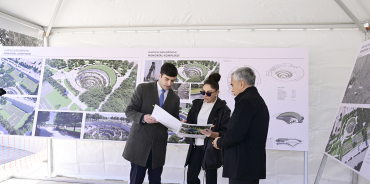 06.03.2025First Vice-President and President of the Heydar Aliyev Foundation Mehriban Aliyeva, accompanied by her daughters Leyla Aliyeva and Arzu Aliyeva, familiarized themselves with the project of the Ganja Memorial Complex. The complex is under construction to honor the memory of the peaceful civilians who lost their lives due to the rocket attacks on the city of Ganja by the Armenian armed forces in 2020.
