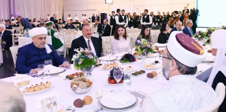 14.11.2019A dinner-party was hosted on behalf of Azerbaijani President Ilham Aliyev in honour of the participants of the 2nd Baku Summit of World Religious Leaders, November 14.