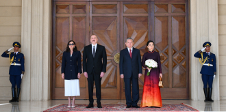 Hər iki ölkənin Dövlət bayraqlarının dalğalandığı meydanda ali qonağın şərəfinə fəxri qarovul dəstəsi düzülmüşdü.