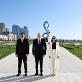 Dövlətimizin başçısı burada Azərbaycanın üçrəngli Dövlət Bayrağını ucaldıb.