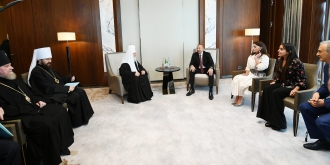 14.11.2019Azərbaycan Respublikasının Prezidenti İlham Əliyev, birinci xanım Mehriban Əliyeva və qızları Leyla Əliyeva noyabrın 14-də Moskvanın və Bütün Rusiyanın Patriarxı Kirill ilə görüşüblər.